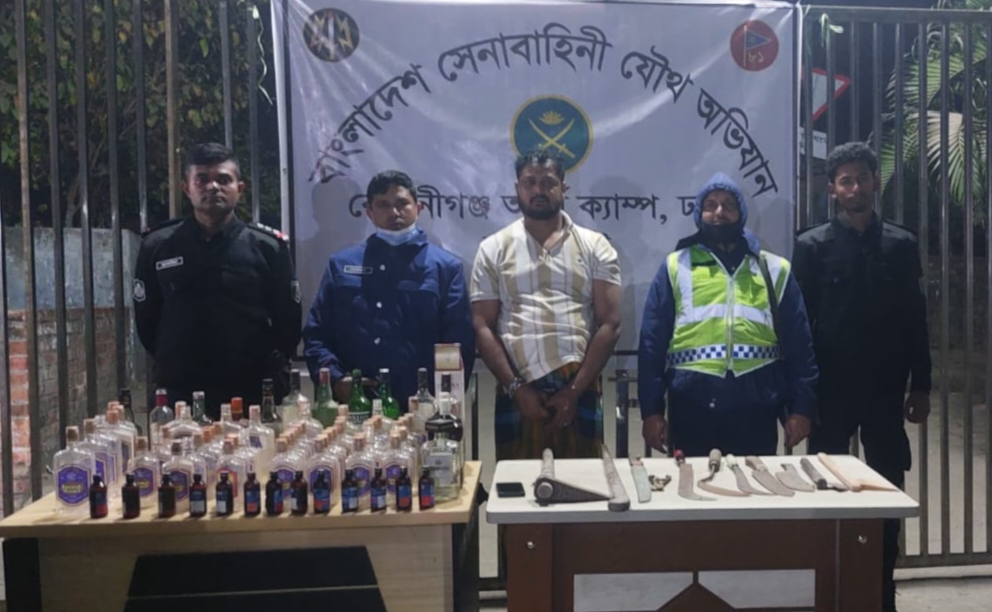 কেরানীগঞ্জ আর্মি ক্যাম্পের অভিযানে মাদক ও অস্ত্রসহ সন্ত্রাসী আটক