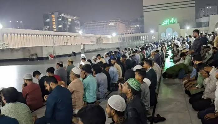 মঙ্গলবার (৩ ফেব্রুয়ারি) মাগরিবের নামাজের পর থেকেই বায়তুল মোকাররমে মুসল্লিদের আগমন শুরু হয়। রাত বাড়ার সঙ্গে সঙ্গে মসজিদ প্রাঙ্গণ কানায় কানায় পূর্ণ হয়ে ওঠে।