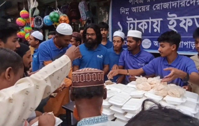 পবিত্র রমজান উপলক্ষে বাংলাদেশ জাতীয়তাবাদী দল (বিএনপি)-এর জেলা শাখা চাঁপাইনবাবগঞ্জ শহরে মাত্র এক টাকায় ইফতার সামগ্রী বিতরণের ব্যতিক্রমী উদ্যোগ নিয়েছে। কলা, খেজুর, বেগুনি, পেঁয়াজু, জিলাপি, শসা ও গাজরসহ প্রায় ১২ থেকে ১৫ পদের সমন্বয়ে তৈরি এ ইফতার প্যাকেজ পেয়ে আনন্দ প্রকাশ করেছেন স্থানীয় নিম্ন আয়ের মানুষ।